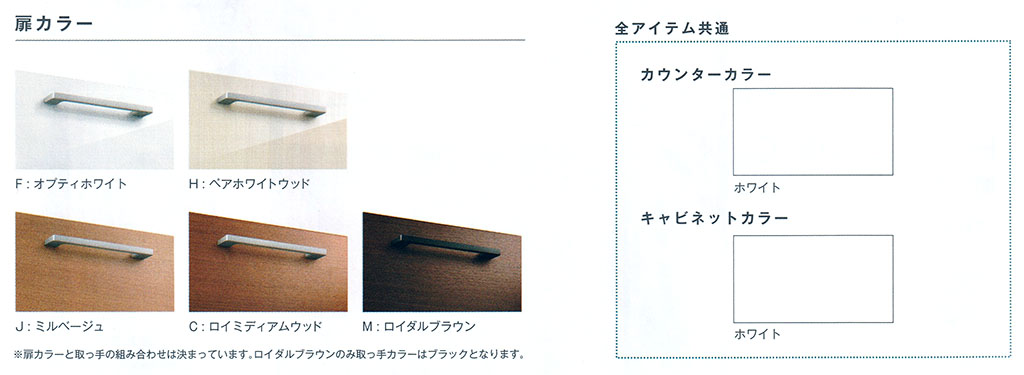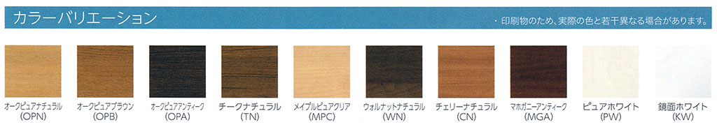 カラバリは下記の通り。キャビネットのカラーはホワイトのみとなります。