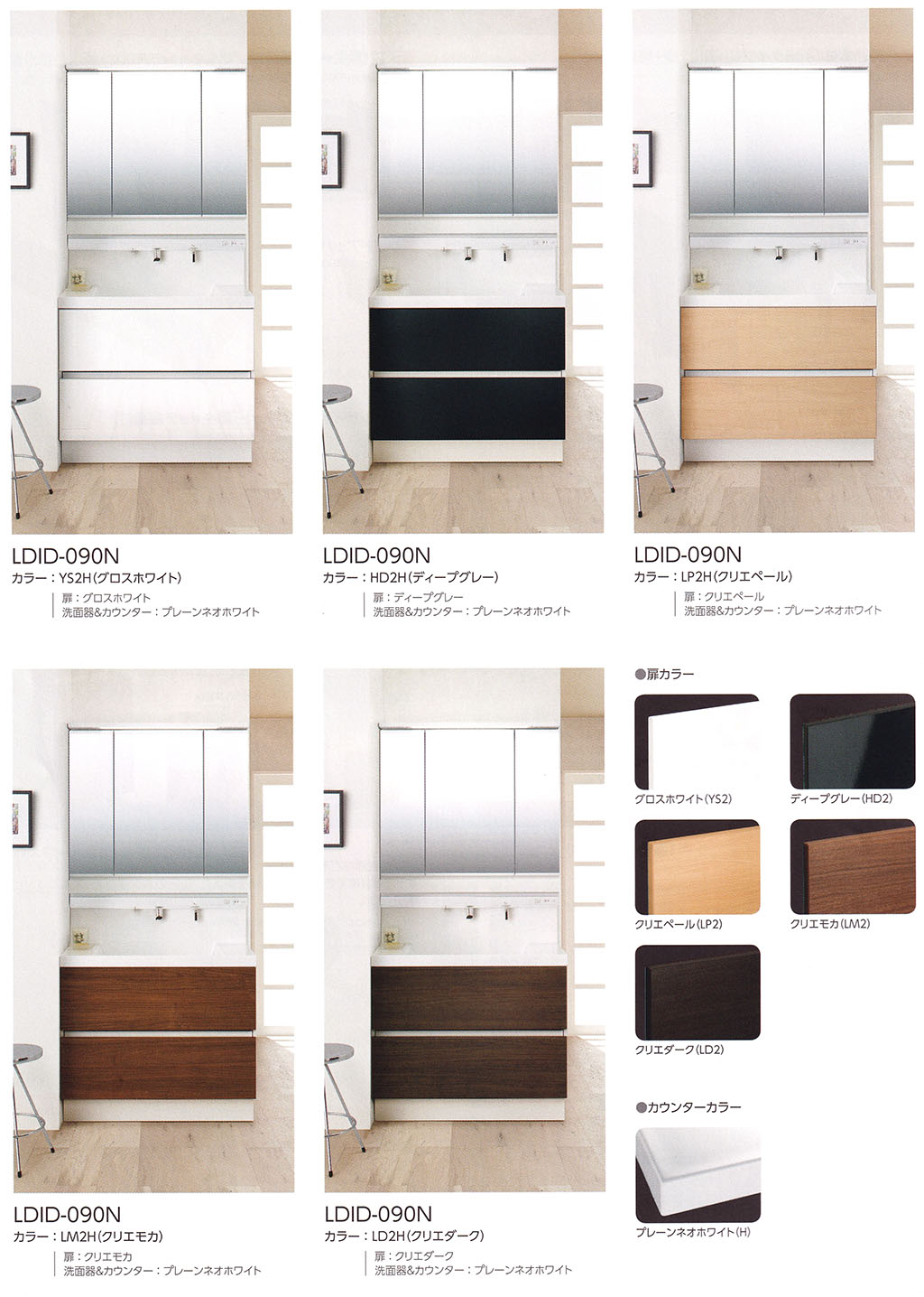 住友林業で標準(=差額無し)で選べる洗面台は、LIXILとPanasonicの2種類です。LIXILはLDIDシリーズ、PanasonicはLDMDシリーズと名付けられています。