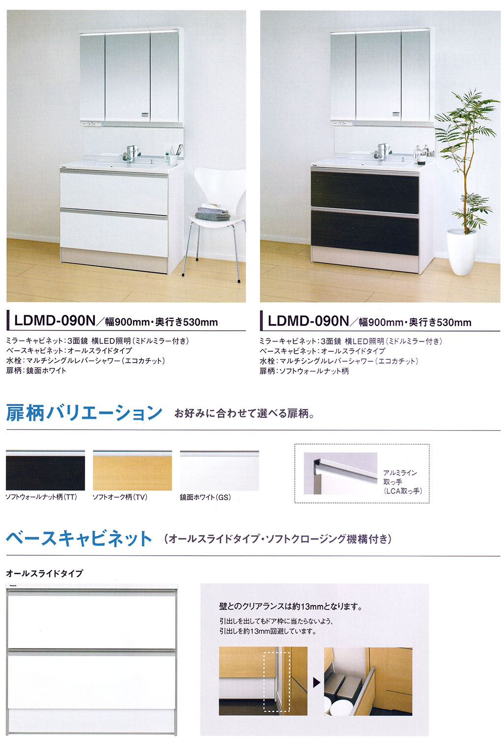 HECDシリーズは見た目はいいのですが、三面鏡の有無、収納力やコンセントの使い勝手ではルミシスのほうが優れている気がします。